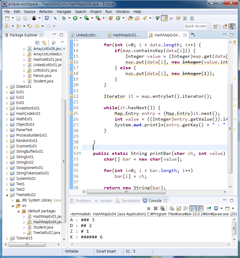 System.out.println(entry.getKey() + " : " + printBar('#', value) + " " + value);