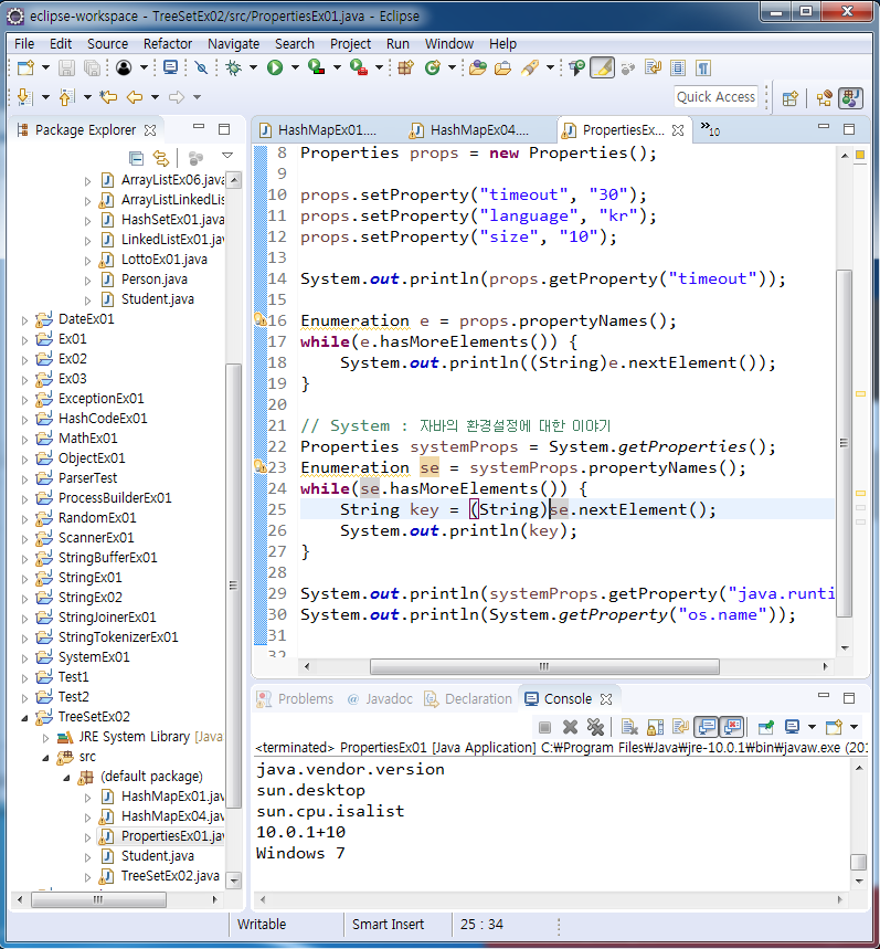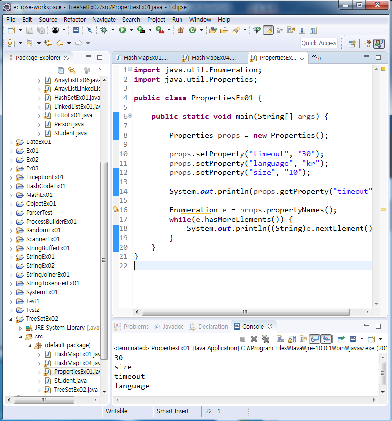 : HashMap의 구번전인 Hashtable을 상속받아 구현한 것으로, hashtable은 키와 값을 (Object, Object)의 형태로 저장하는데 비해 Properties는 (String, String)의 형태로 저장하는 보다 단순화된 컬렉션 클래스이다.
