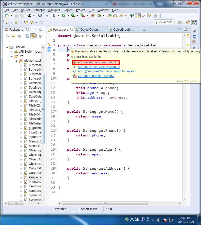 public class Person implements Serializable{ // 버전