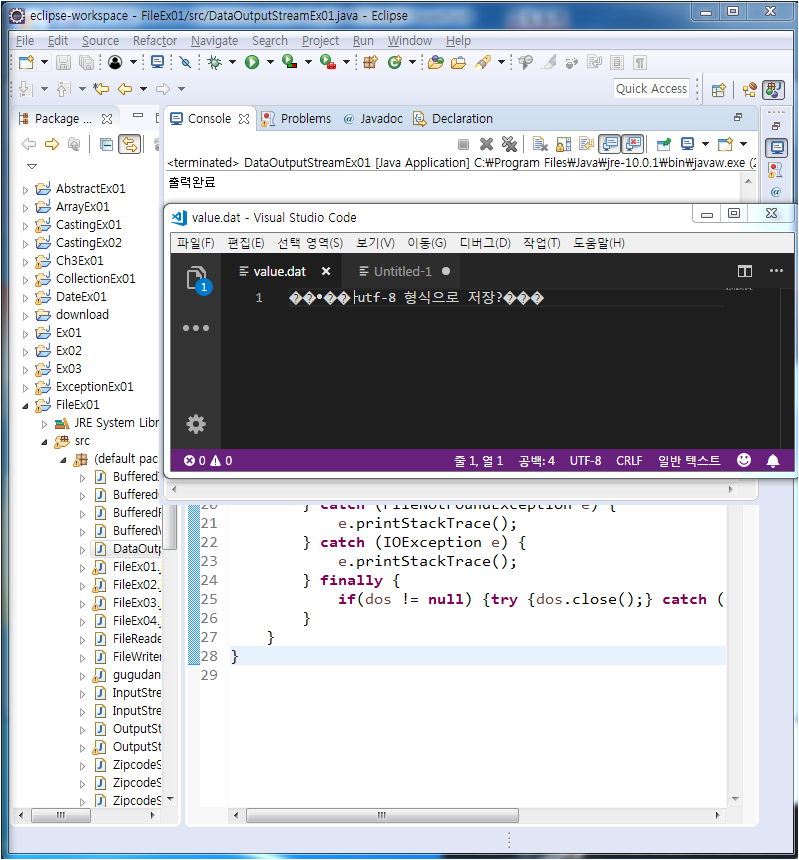 DataOutputStreamEx01 - utf-8 방식으로 저장