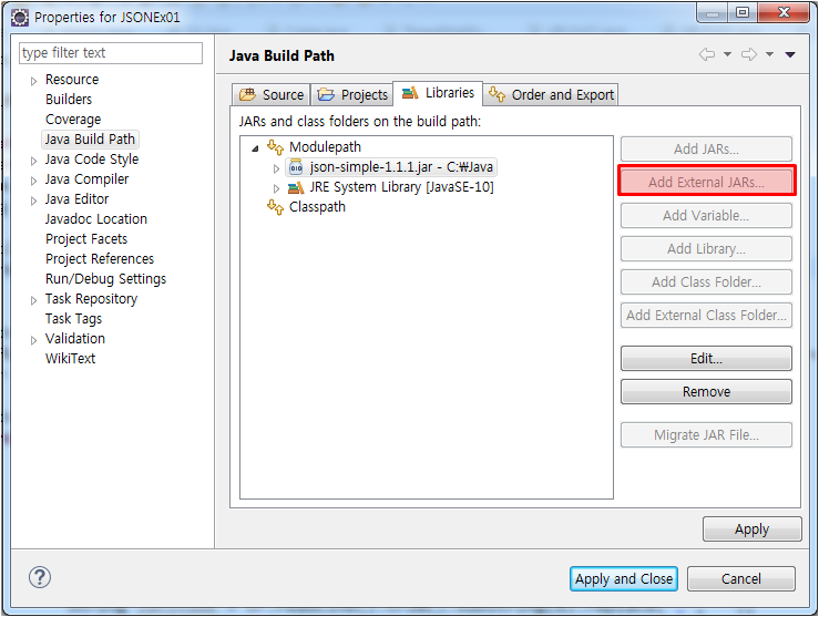 JSONObject object = (JSONObject)parser.parse(json); 객체 파싱 구문을 수행하고