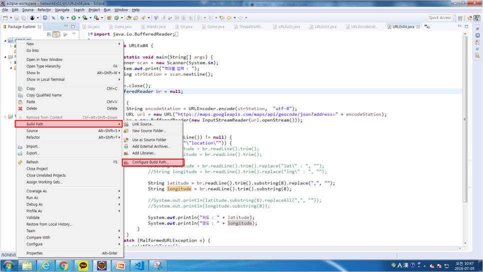 TCPClientEx01 - 한글 받는 법 "utf-8"을 추가한다