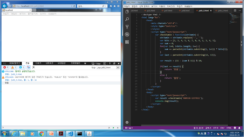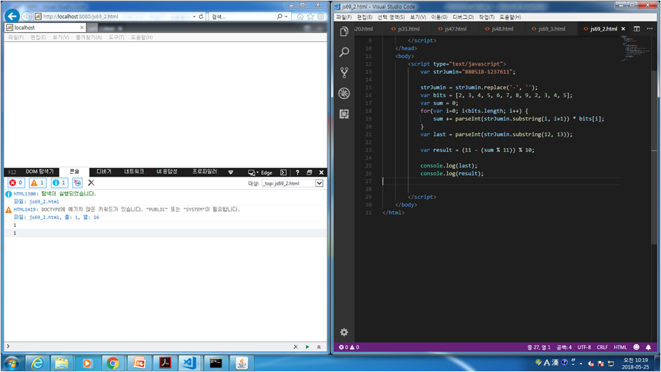 console.log('주민등록번호 13자리를 다시 입력하여 주세요')