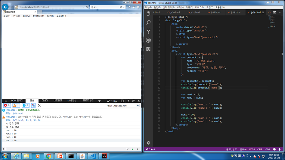 js.59 객체의 속성(num과 product 값 수정시 반영 정도)