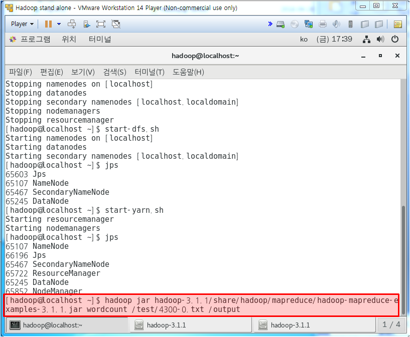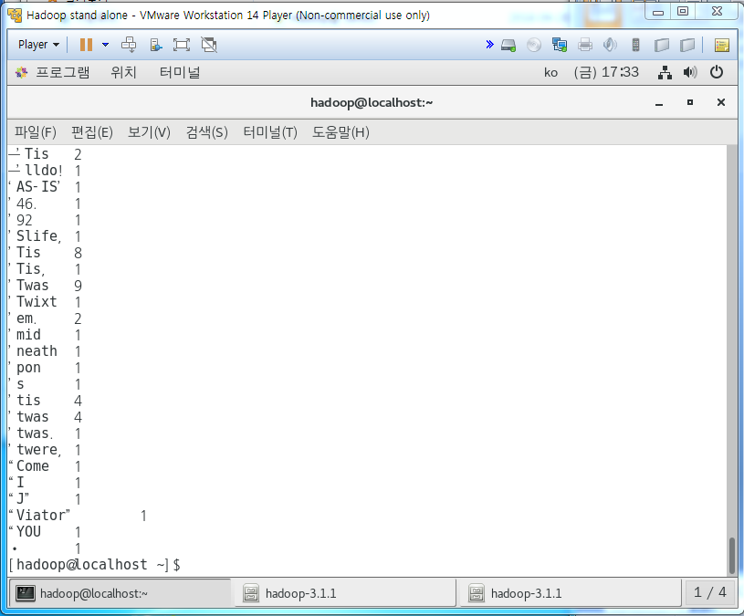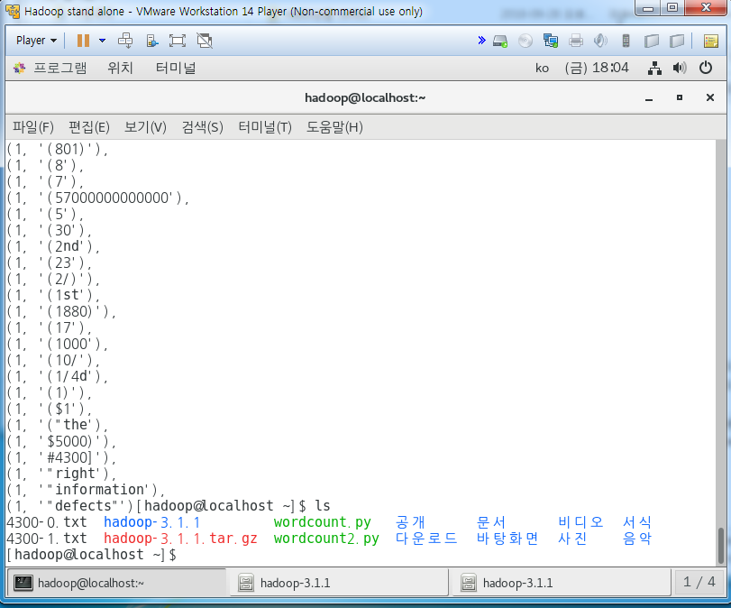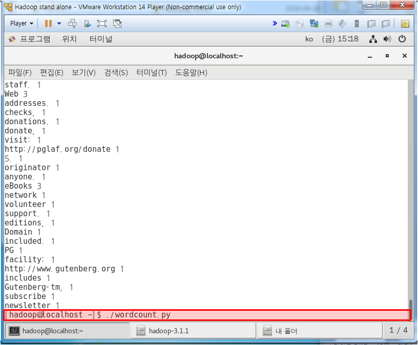 여기까지가 local에서 wordcount 하는법