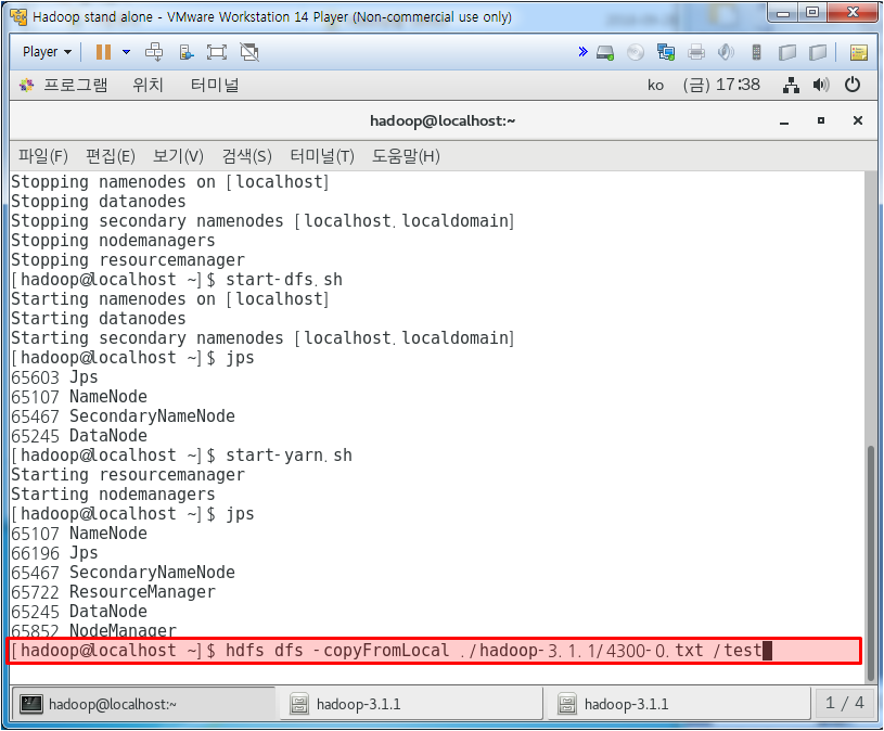 [hadoop@localhost hadoop-3.1.1]$ cp 4300-0.txt input/