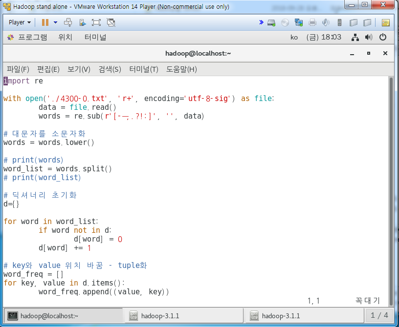 하둡에서 파이썬 실행해서 해보기